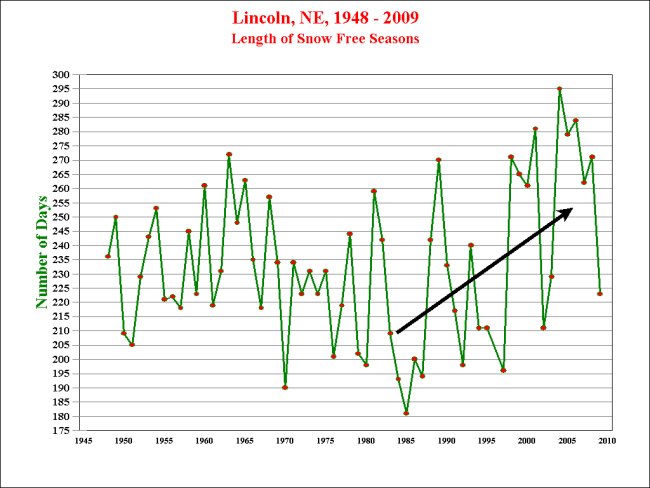Lincoln Nebraska's Snow Free Seasons, 1948-2009